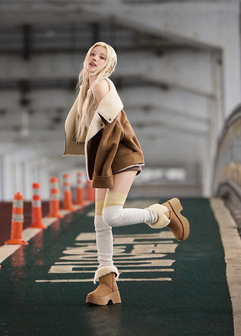 송우기 동일 모델 UGG 가을겨울 신상 여성용 패션 플랫폼 뒤집을 수 있는 스노우 부츠