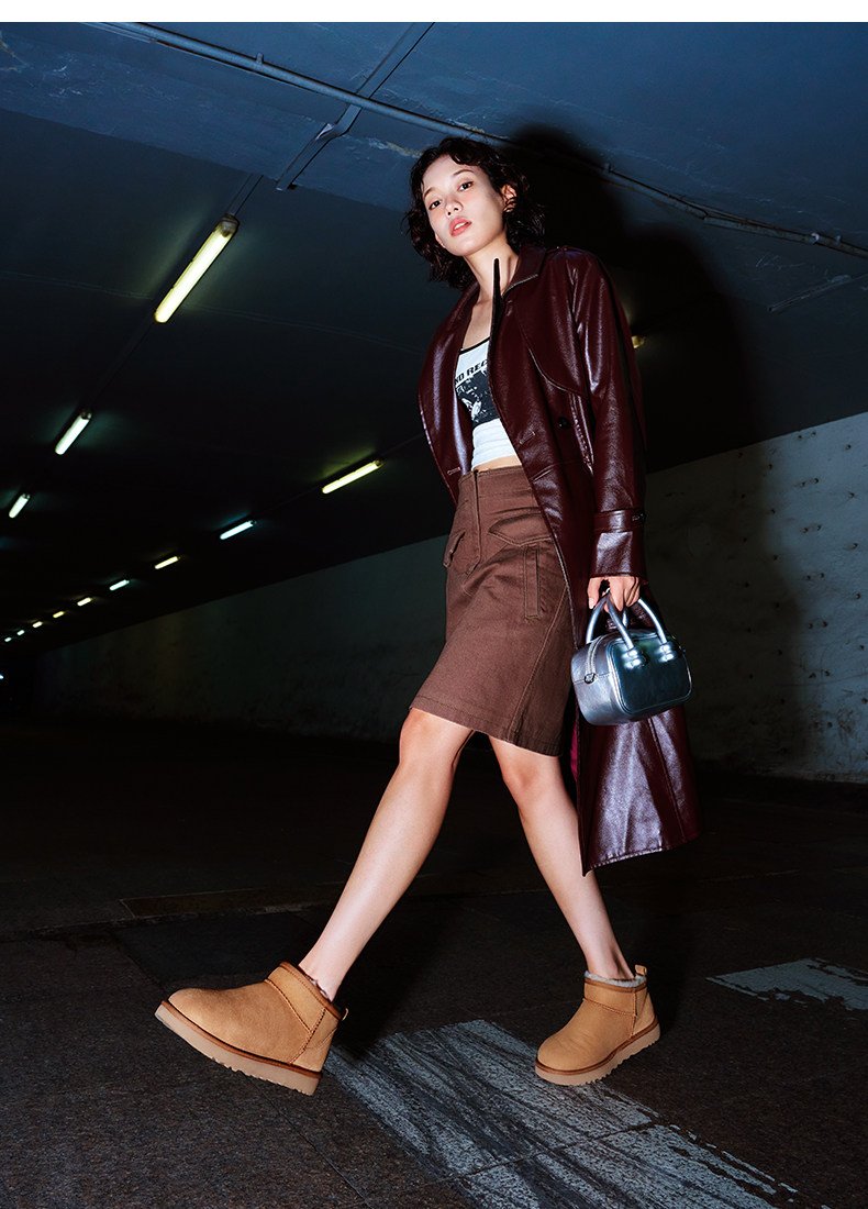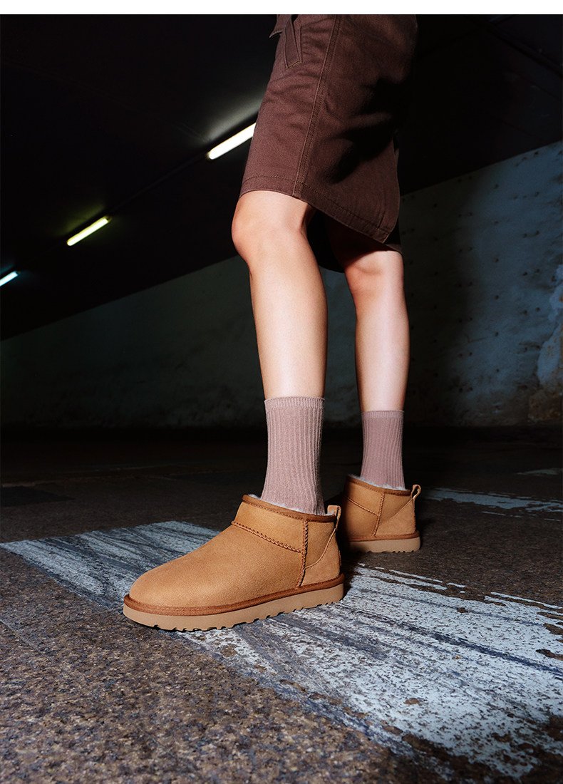 UGG 가을겨울 여성용 캐주얼 편안한 플랫 슬림 색상 둥근 발끝 패션 클래식 숏 부츠 스노우 부츠