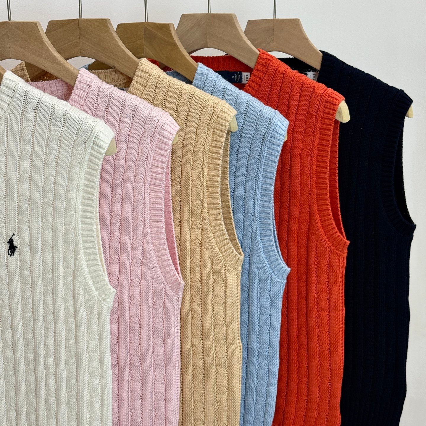 Ralph Lauren 클래식 꼬임짜기 폴로자수 크루넥 조끼