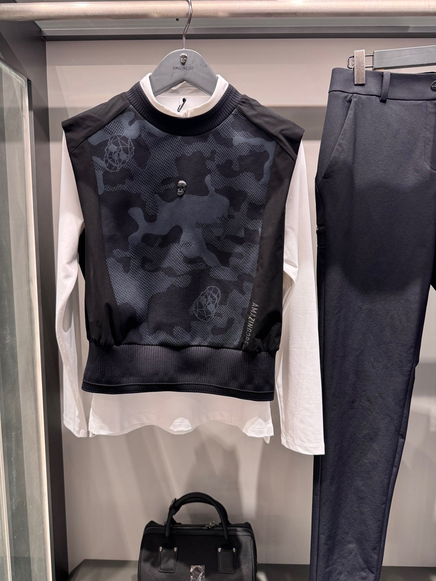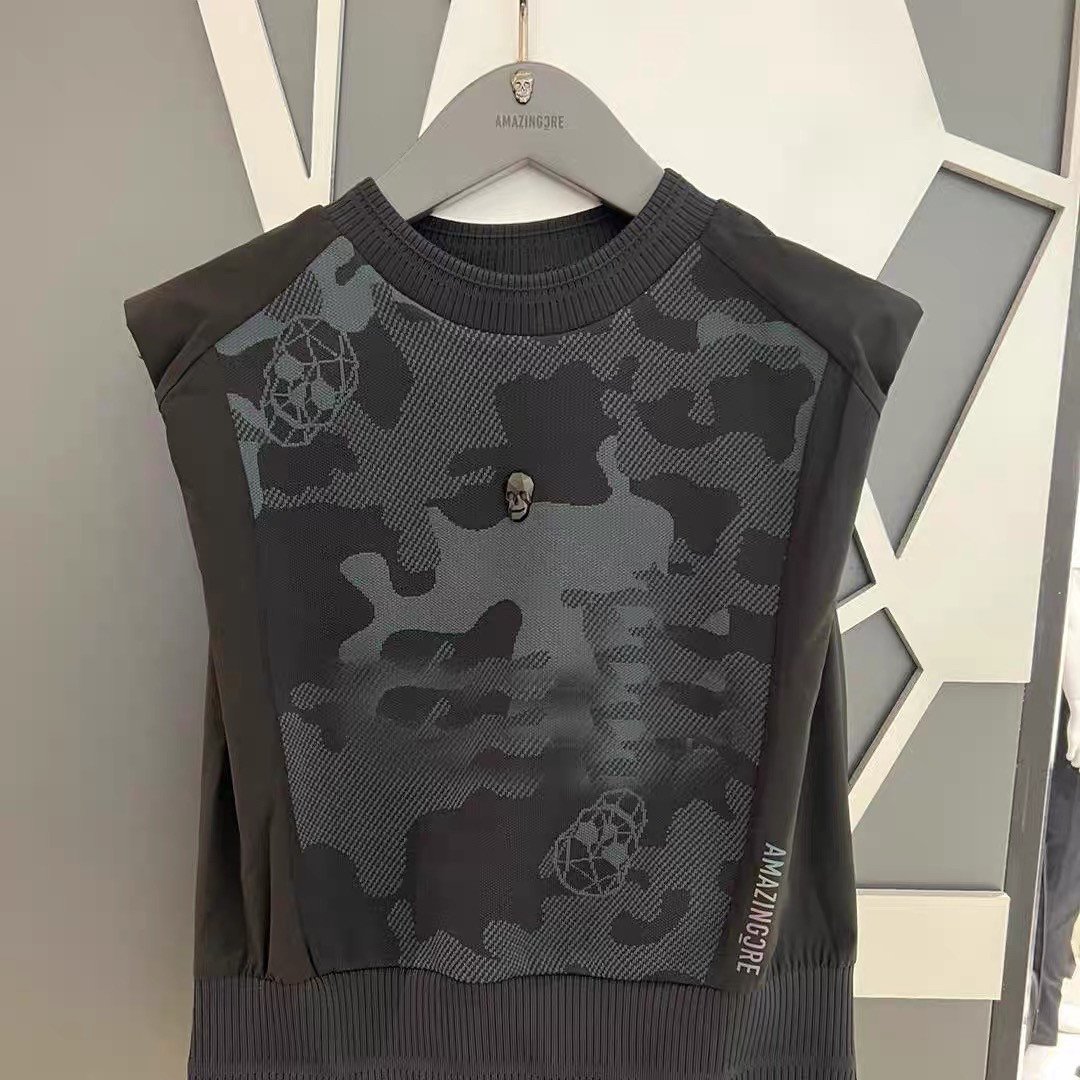 Amazingcre 여성용 신상 골프웨어 캐주얼 다용도 라운드넥 니트 카모플라쥬 색상 조끼
