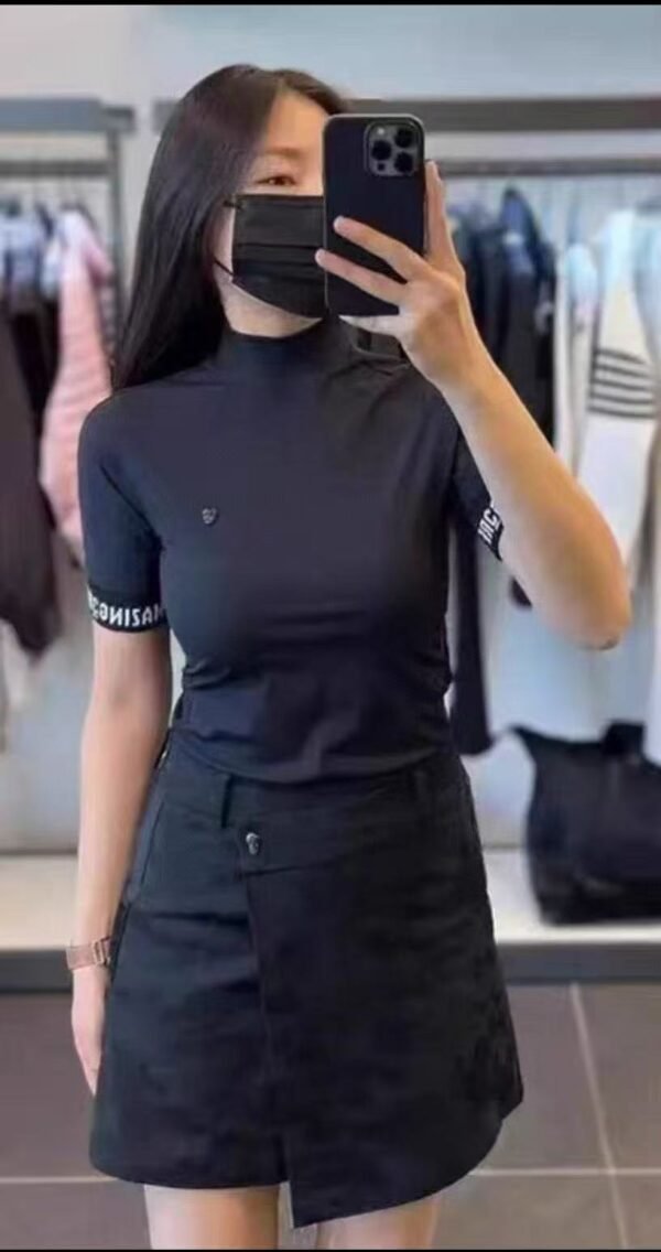 Amazingcre 여성용 2026 여름형 골프 상의 패션 슬림핏 반팔 티셔츠 스탠드칼라