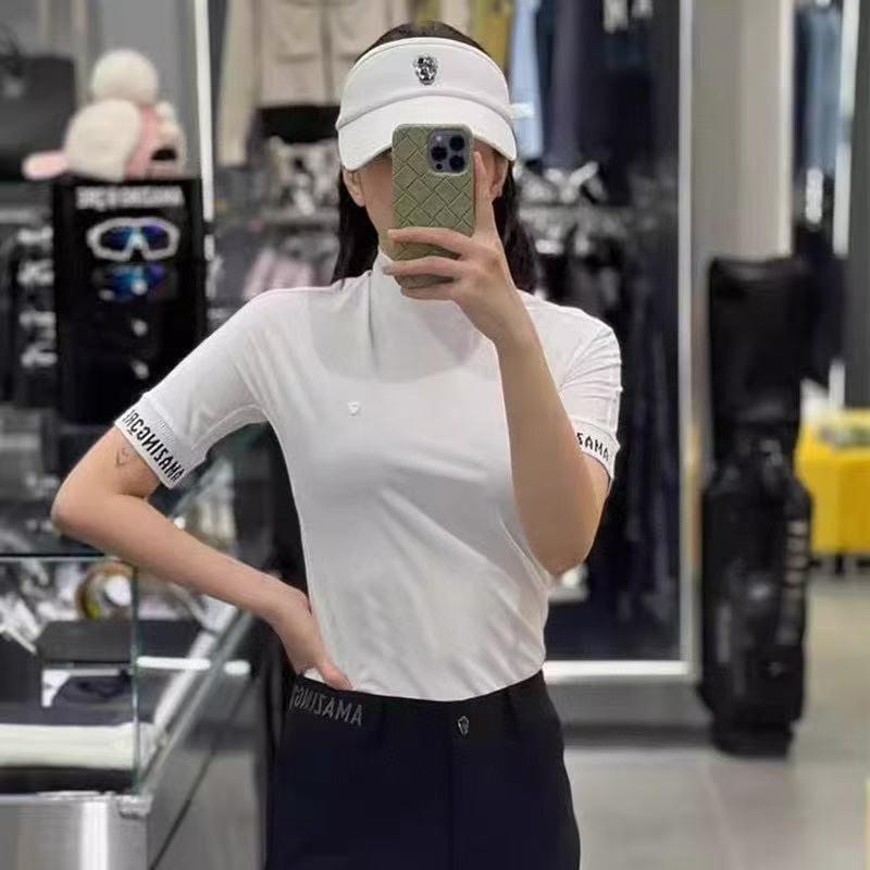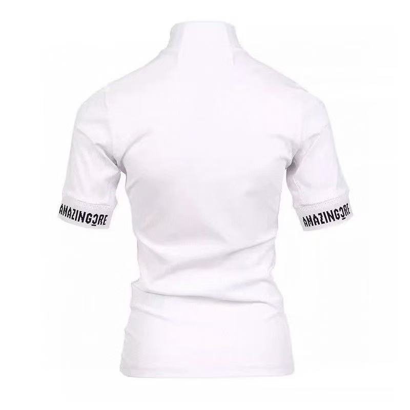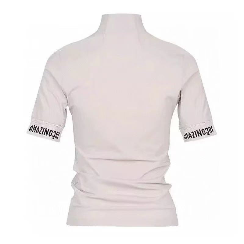 Amazingcre 여성용 2026 여름형 골프 상의 패션 슬림핏 반팔 티셔츠 스탠드칼라