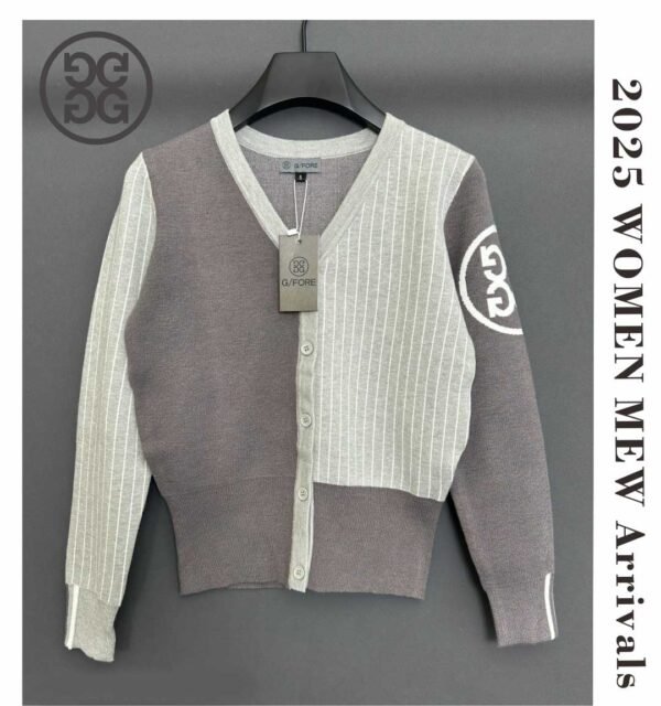 G/FORE 여성용 골프웨어 울 니트 가디건 슬림핏 몰딩 컬러블록 젊어보이는 롱슬리브 코트