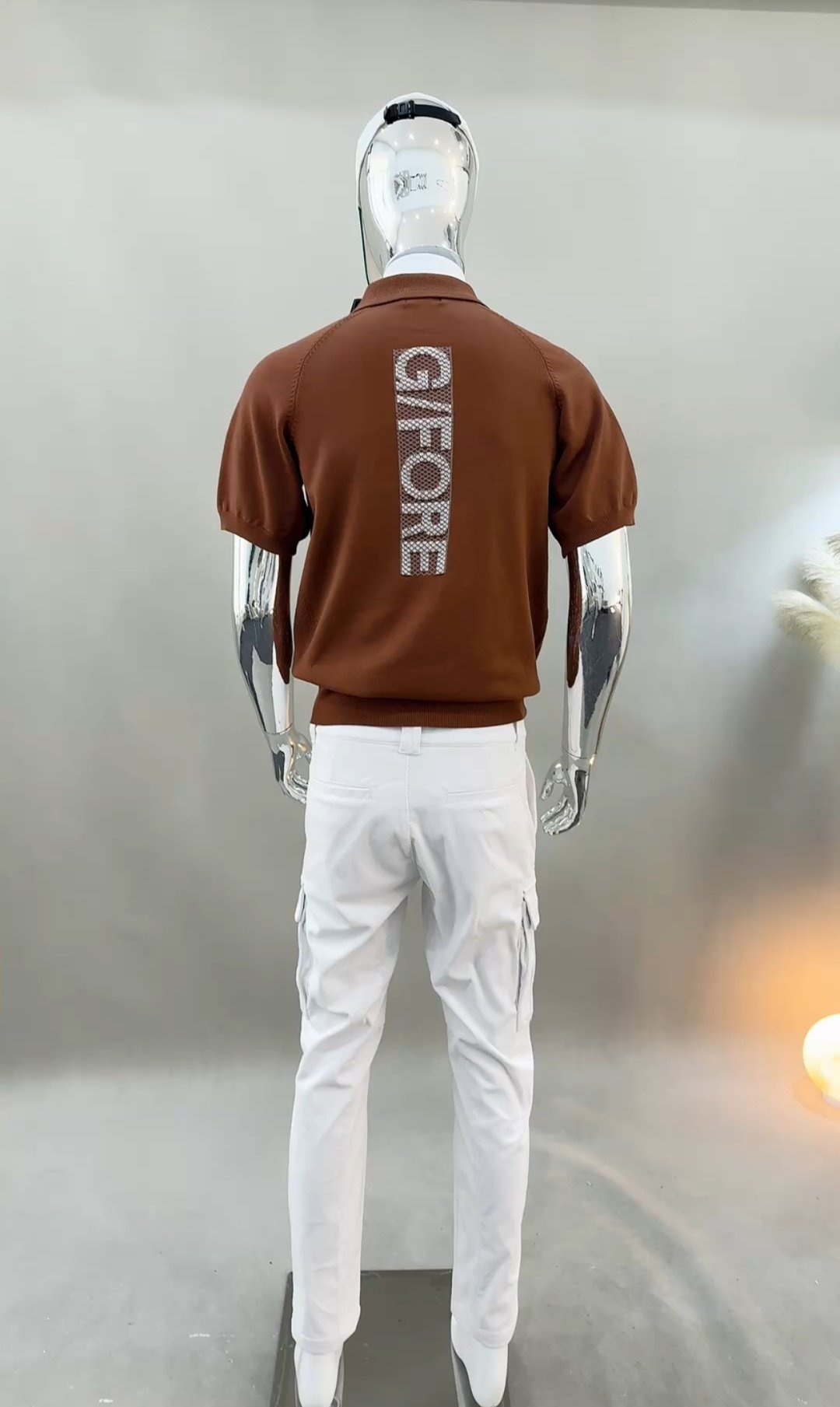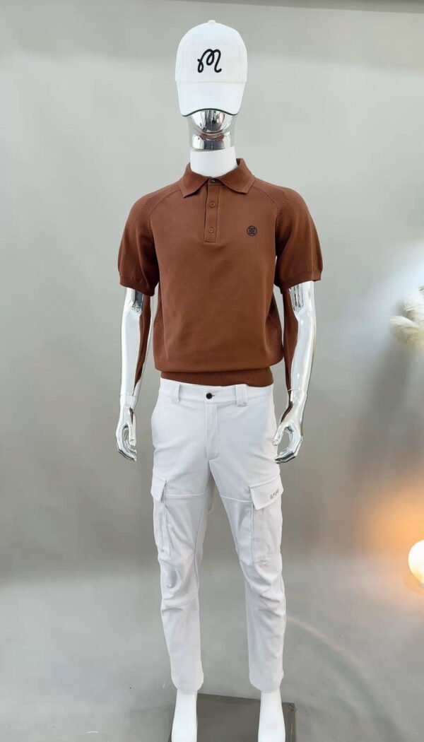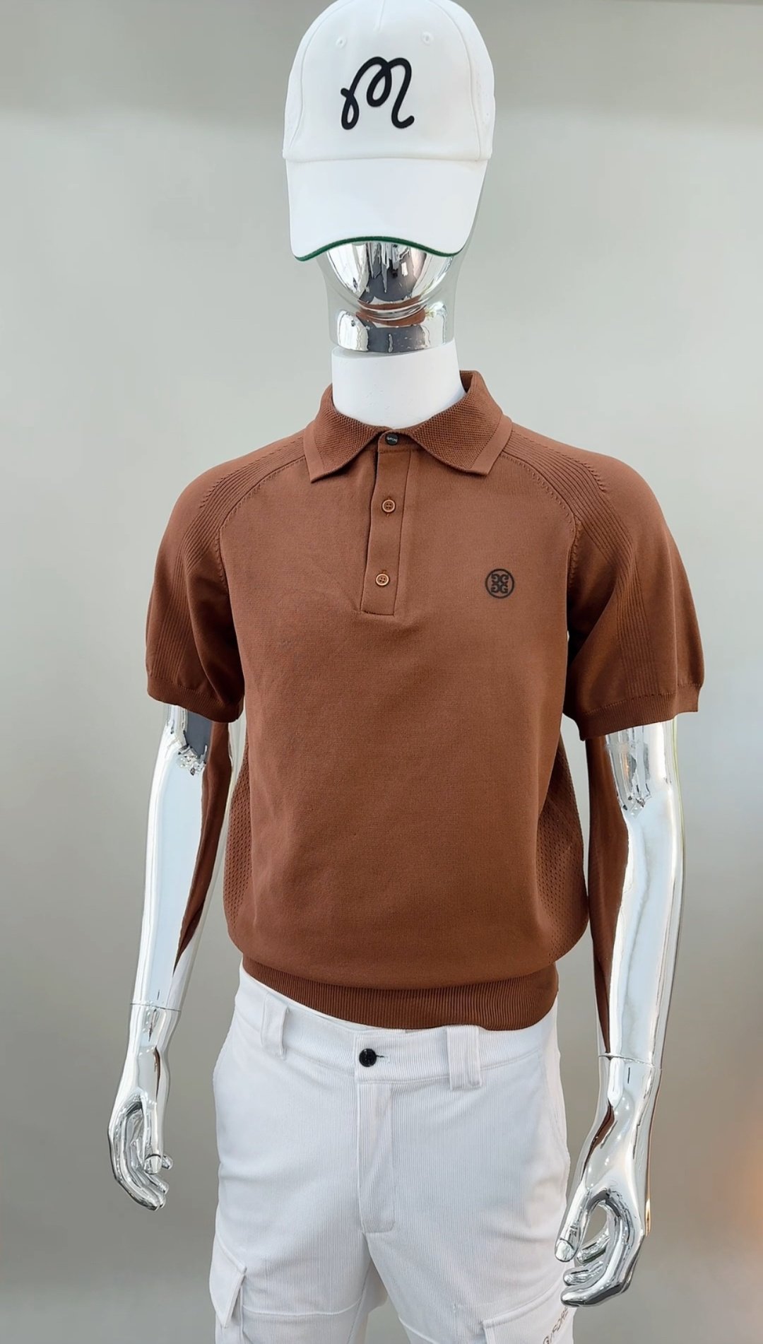 G/FORE 남성용 골프 웨어 베이스볼 스타일 카라 니트 반팔 티셔츠