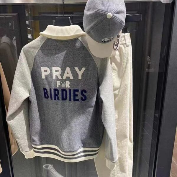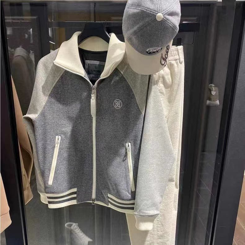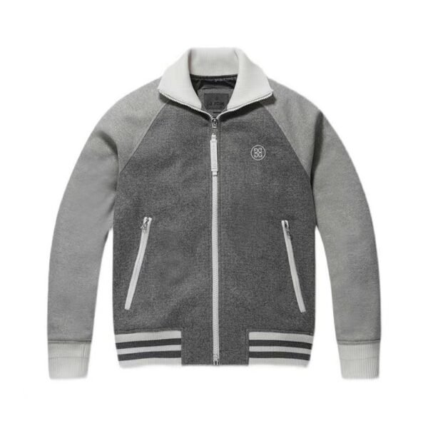 G/FORE 남성용 라이트 그레이 울 지퍼 야구 점퍼 보온성