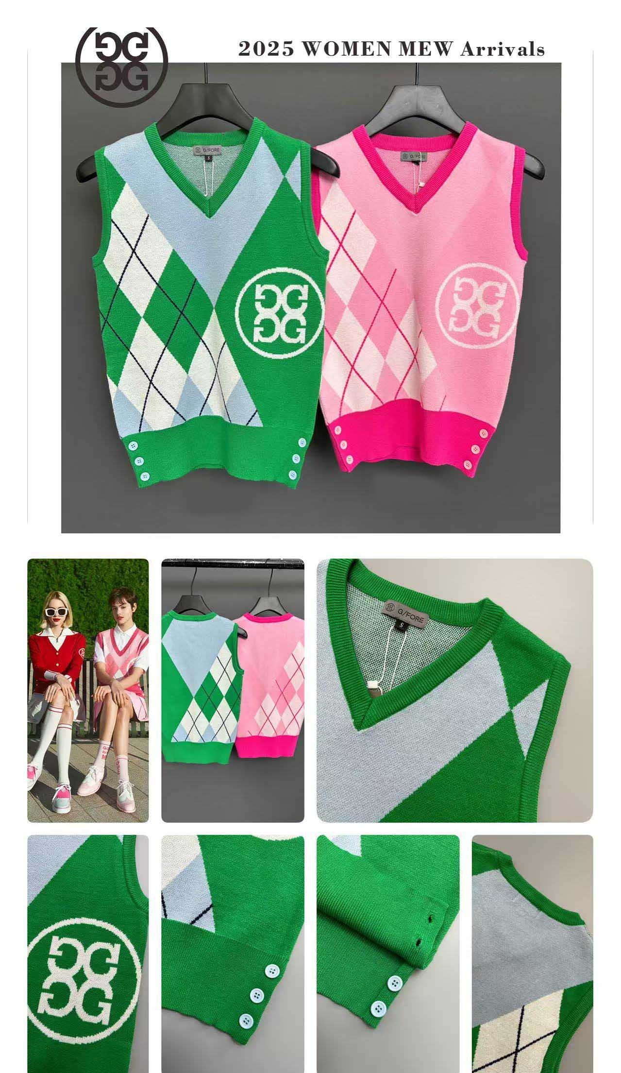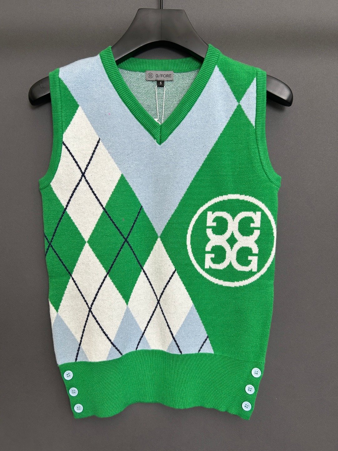 G/FORE 여성용 초가을 골프 민소매 니트 조끼 패션 올매치 캐주얼 고급스러운 체커보드 무늬 베스트 트렌디 스타일