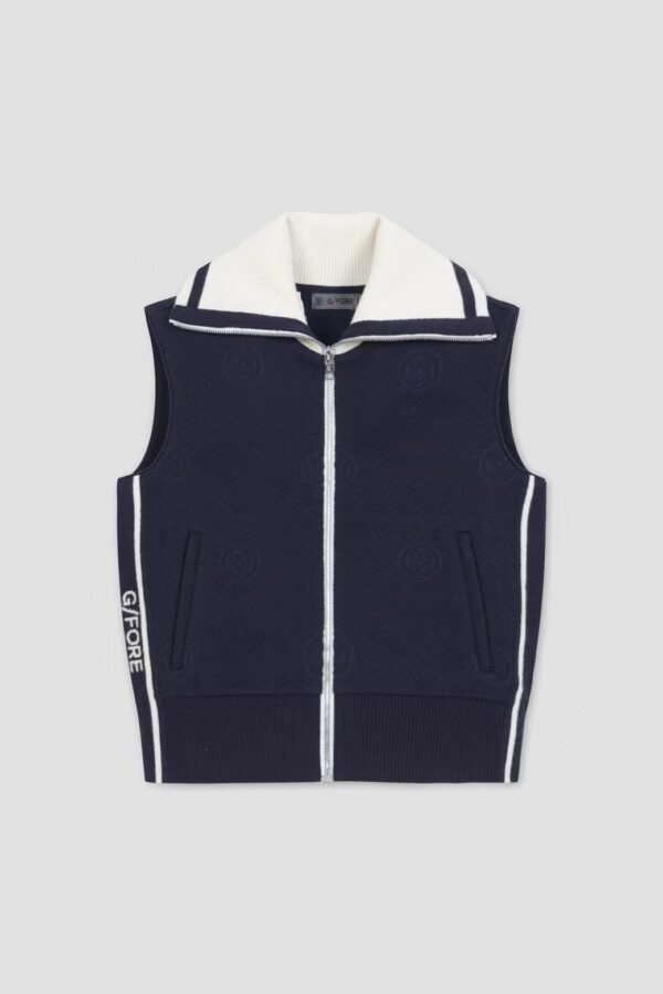 G/FORE 여성용 가을·겨울 골프웨어 우아한 바람막이 로고 니트 아우터 컬라 지퍼 컬러 블록 슬리브리스 조끼