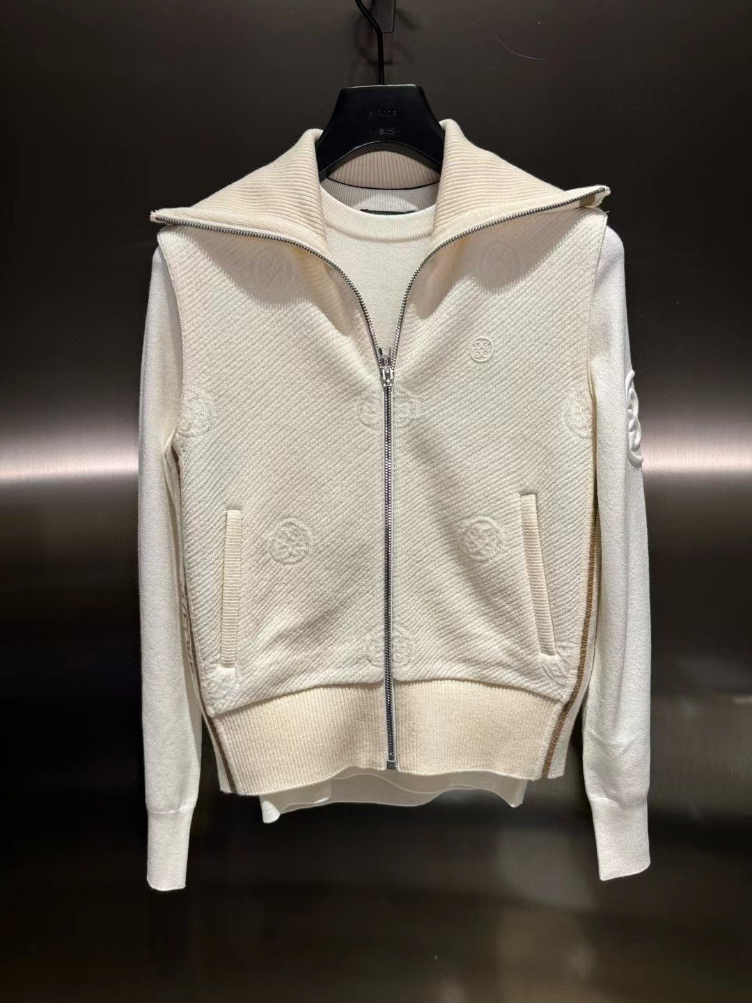 G/FORE 여성용 가을·겨울 골프웨어 우아한 바람막이 로고 니트 아우터 컬라 지퍼 컬러 블록 슬리브리스 조끼