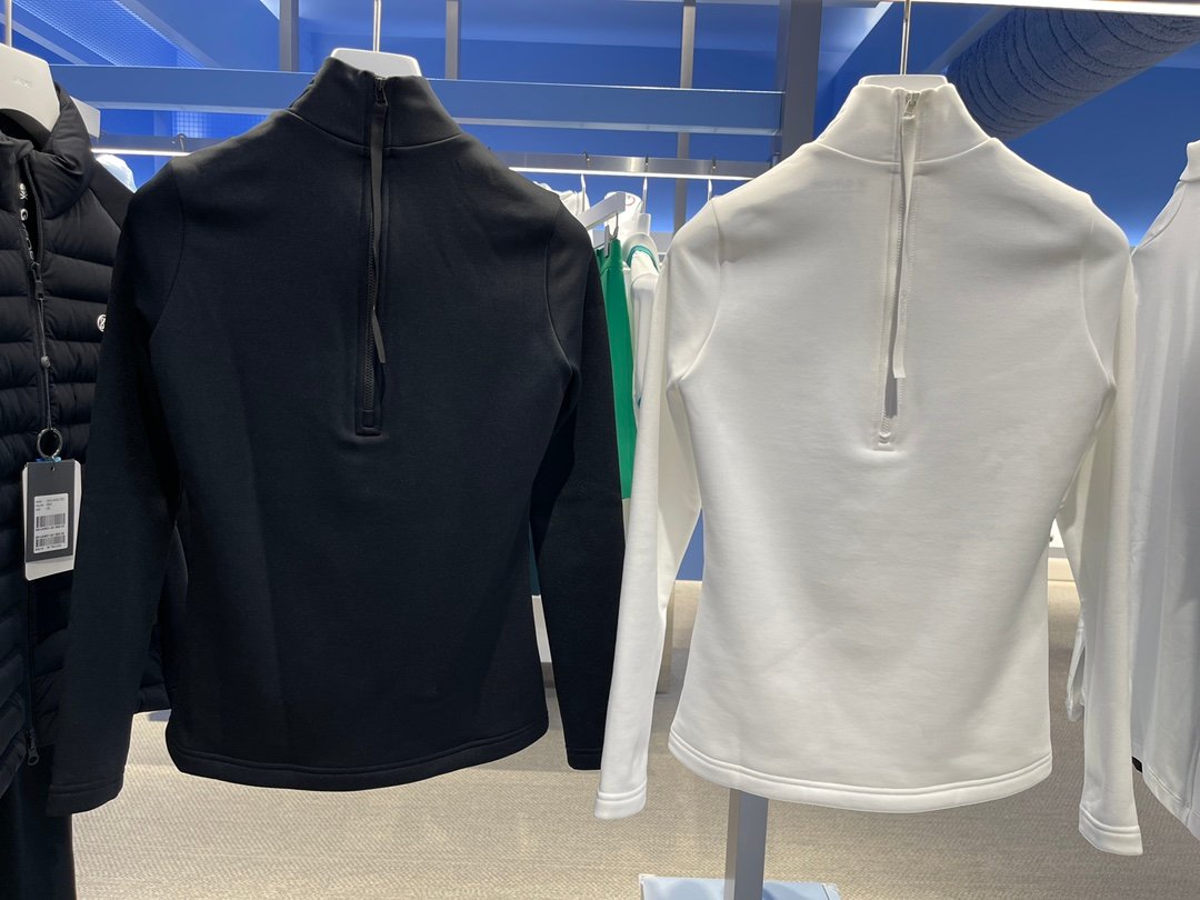 G/FORE 여성용 가을 골프웨어 단색 심플 스탠드 칼라 컬러 블록 롱 슬리브 스포츠 다용도 하프 지퍼 기본 레이어드 티셔츠