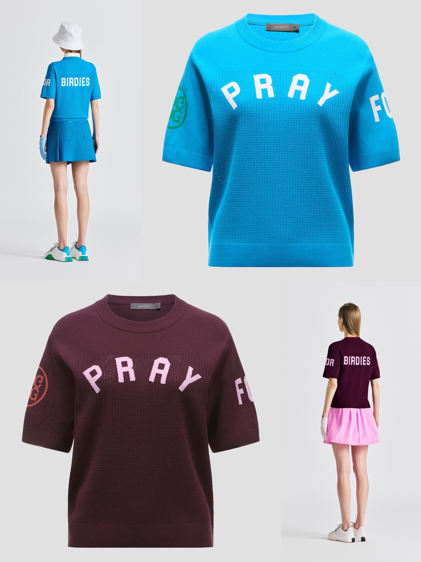 G/FORE 여성용 골프 패션 문자 니트 슬림 몸매 보정 반팔 티셔츠 아웃도어 스포츠 상의