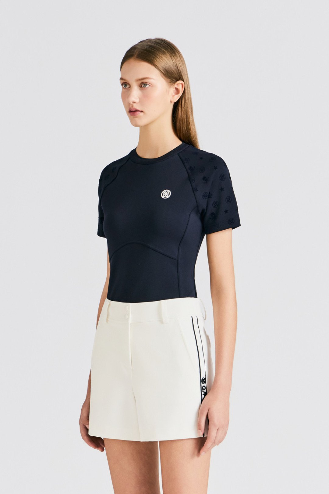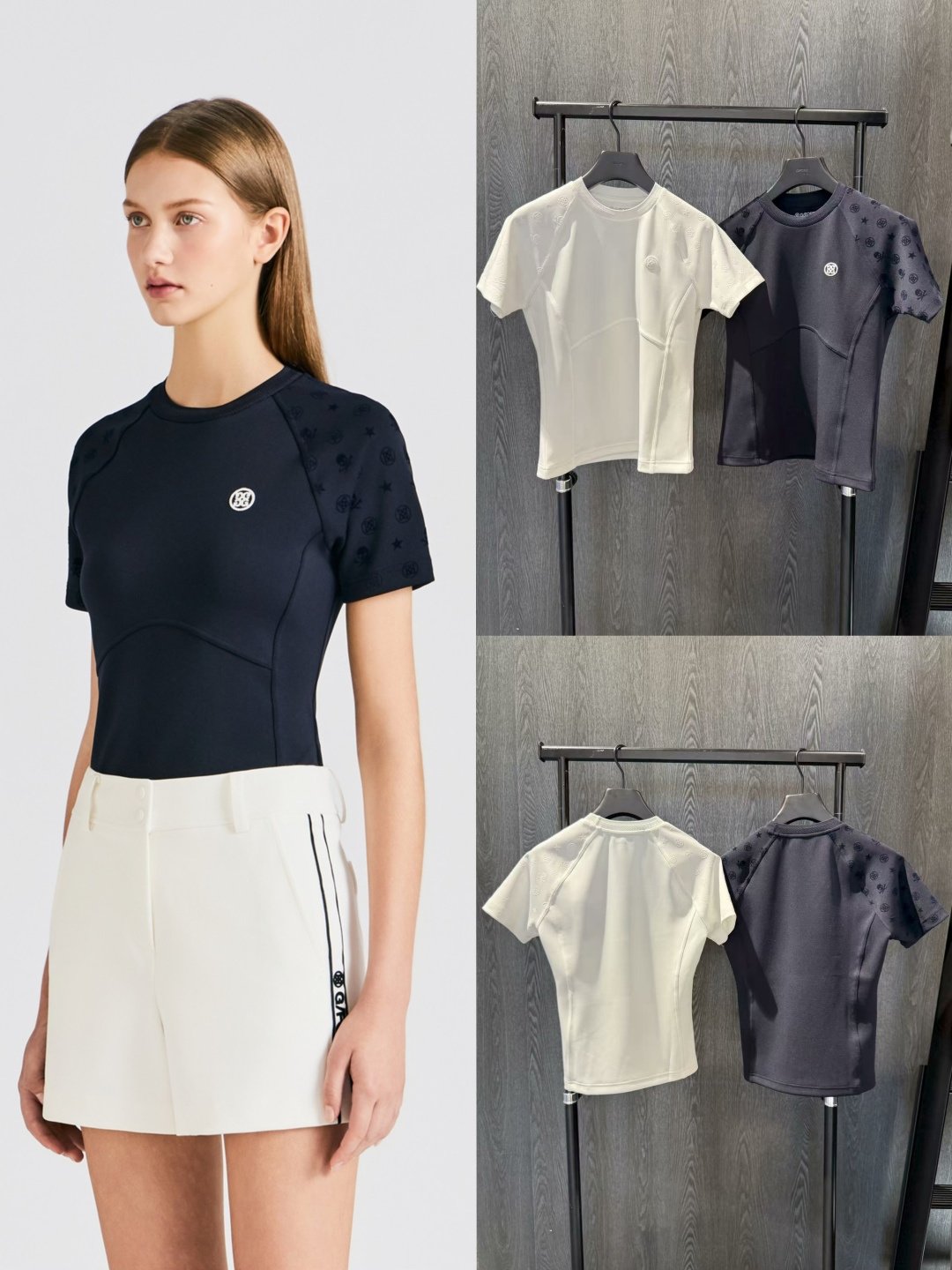 G/FORE 여성용 신상 골프웨어 운동용 고프 볼 베이직 니트 반팔 티셔츠 동안스타일 데일리 캐주얼 운동복