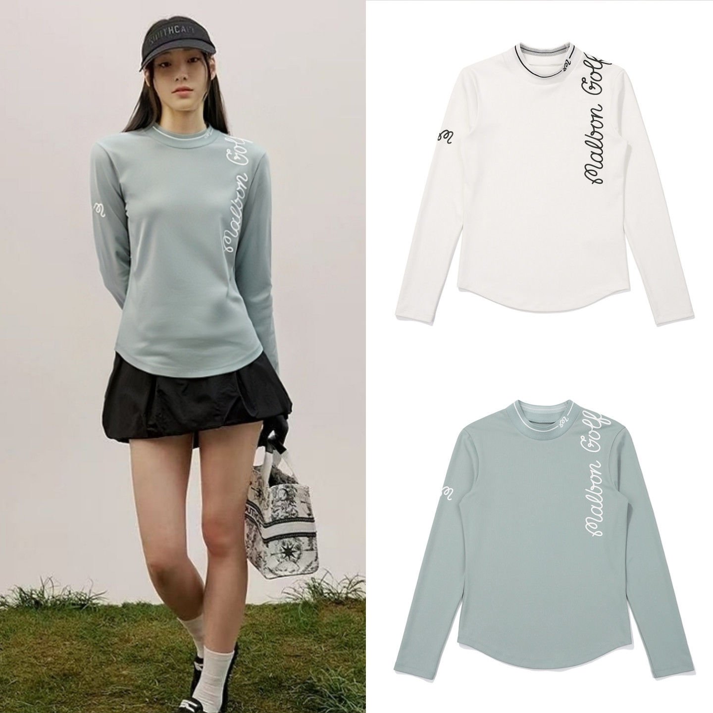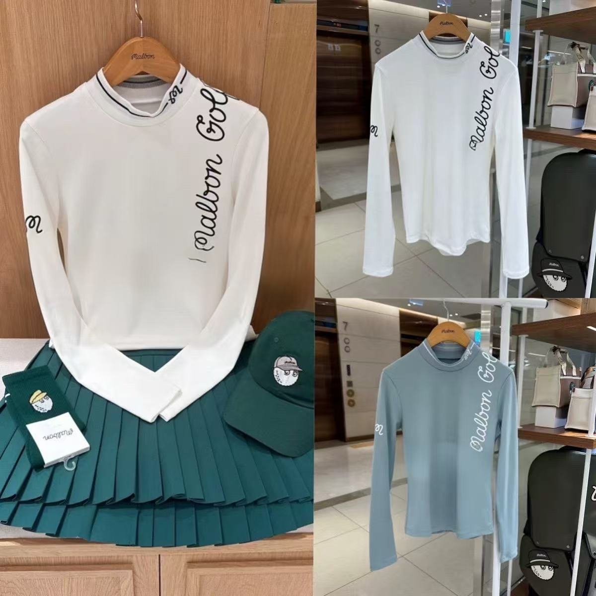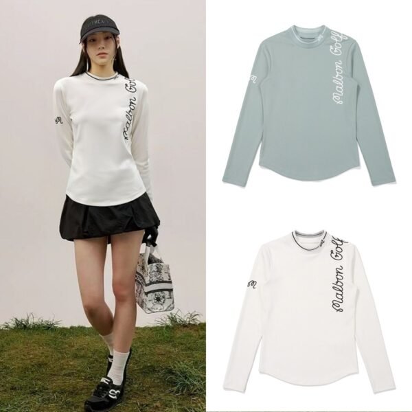 G/FORE 여성 골프웨어 2026 상의 GOLF 로고 컬러 매칭 하이넥 긴팔 티셔츠
