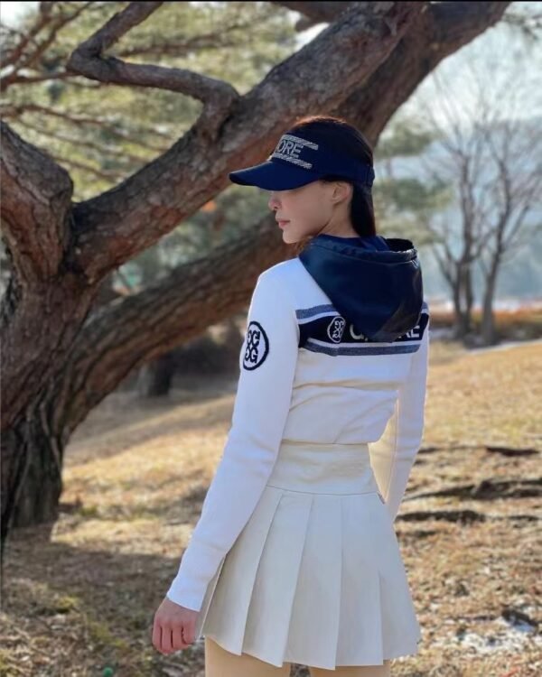 G/FORE 여성 골프 봄가을 패션 유니크 노슬리브 카라 조끼 상의 주름치마 세트 트렌디
