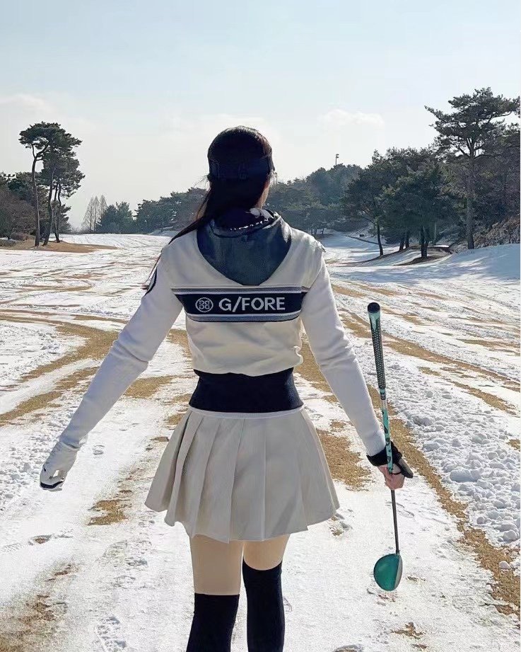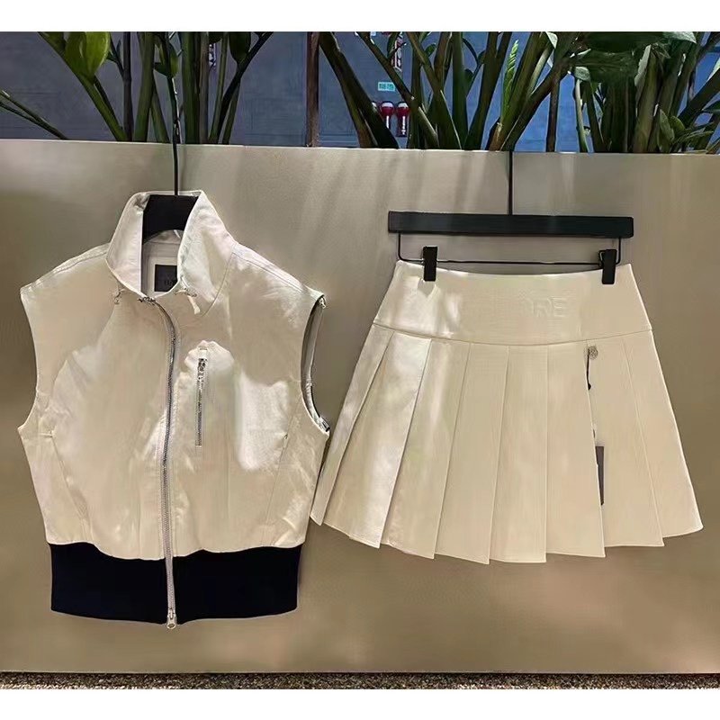 G/FORE 여성 골프 봄가을 패션 유니크 노슬리브 카라 조끼 상의 주름치마 세트 트렌디