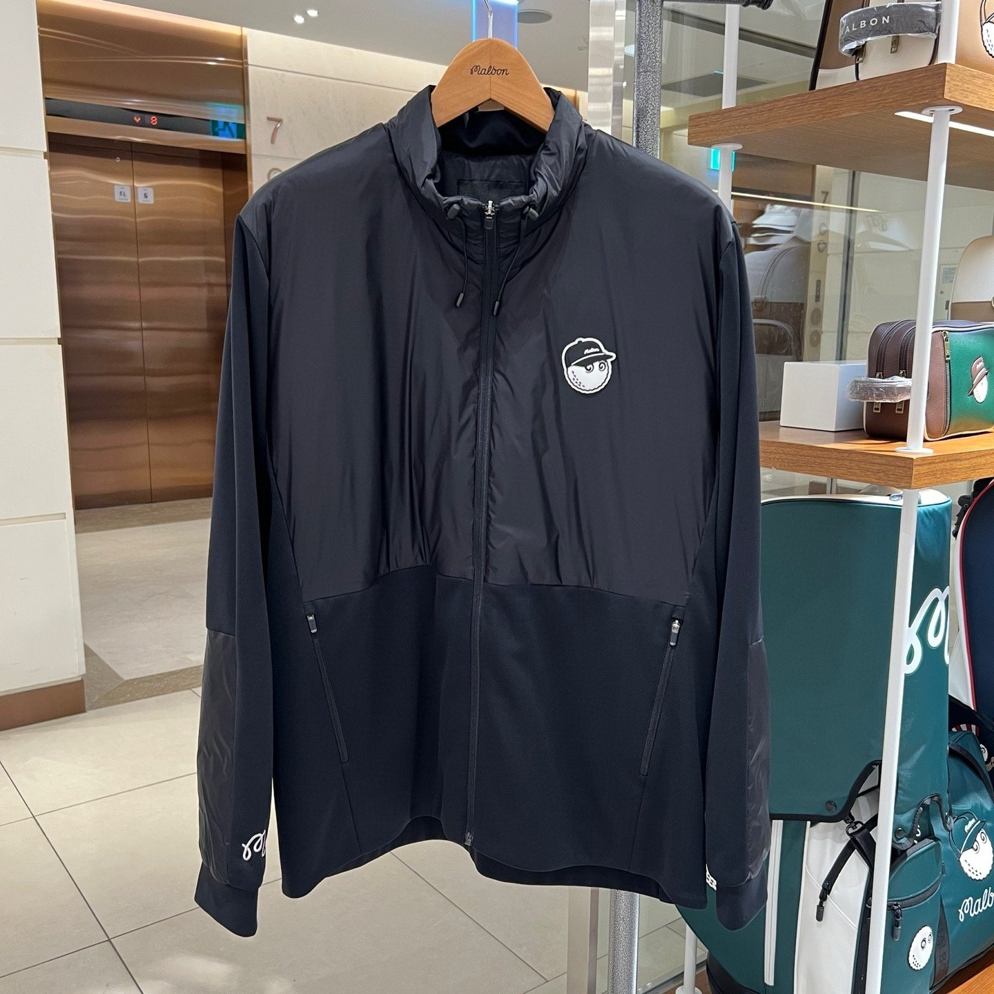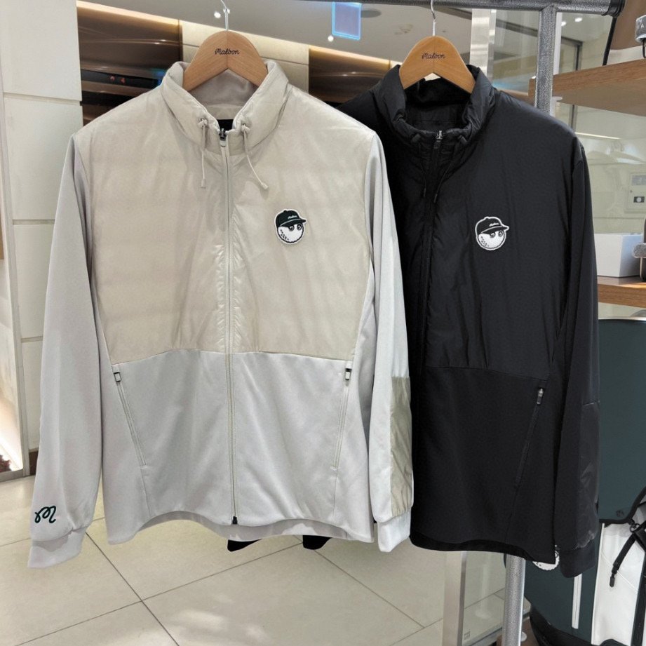 MALBON 골프웨어 남성용 25년 겨울 모델 스탠드 칼라 로고 패치워크 다운 롱슬리브 자켓