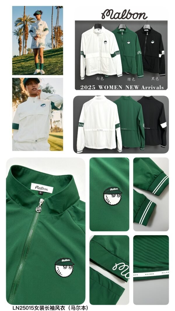 Malbon 여성용 골프웨어 25년 신상 가을 패션 스포츠 바람막이 코트 소매 분리형 골프복