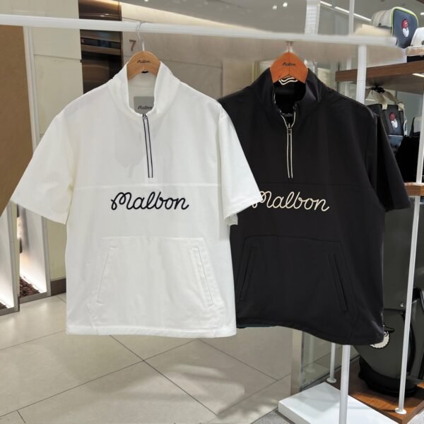 Malbon 남성 골프웨어 26 봄여름 시즌 로고 하프집업 칼라 반팔 풀오버 캐주얼 아웃도어 상의