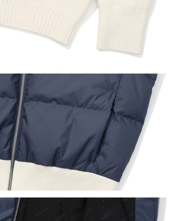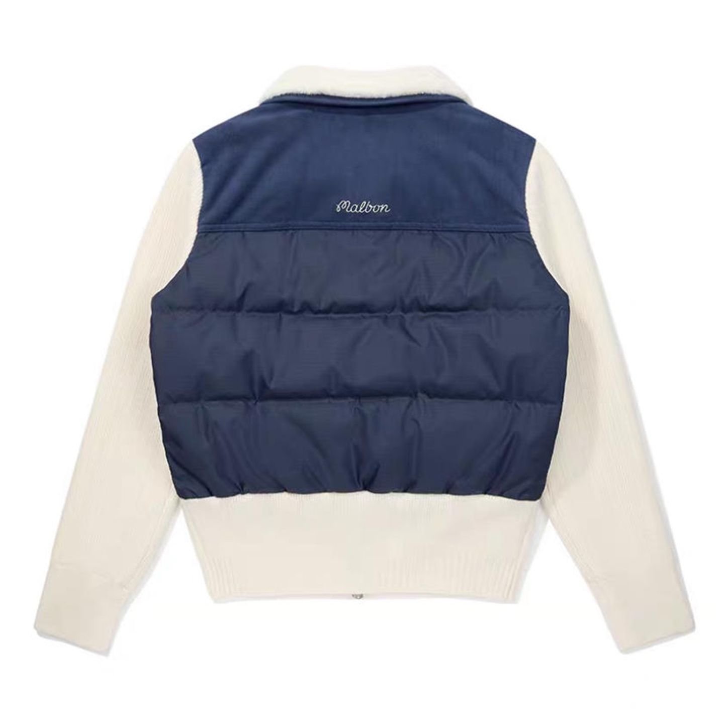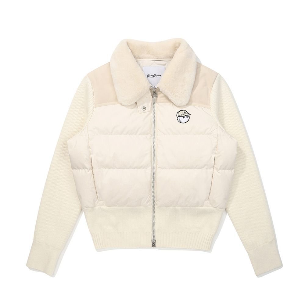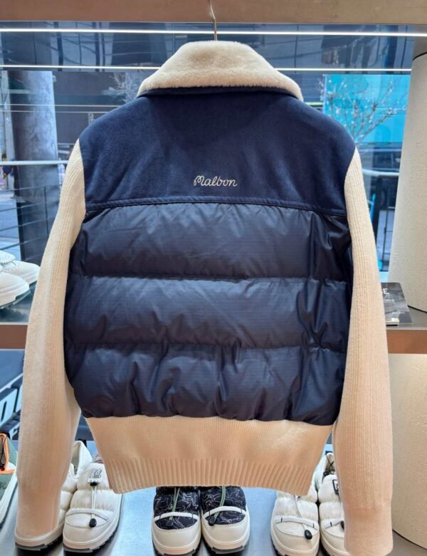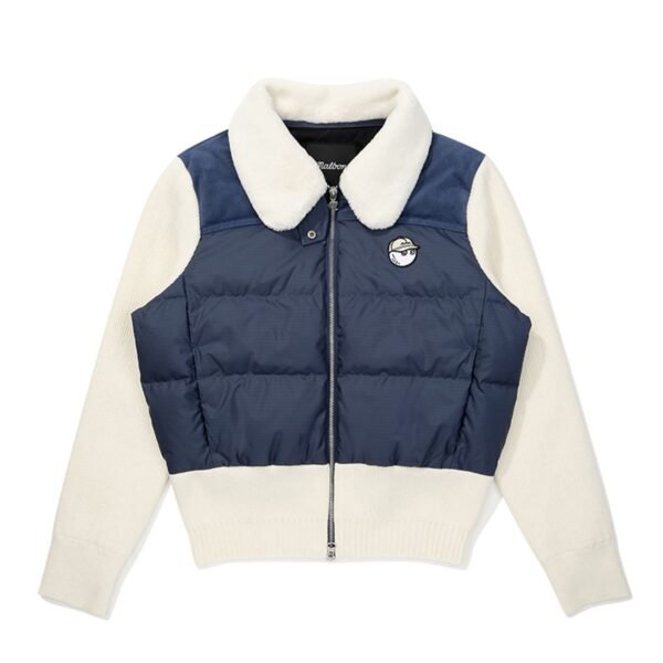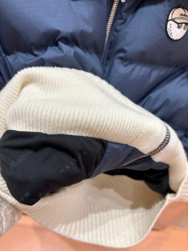 Malbon 여성용 골프웨어 가을겨울 로고 컬러블록 니트 보온 캐주얼 다운 재킷