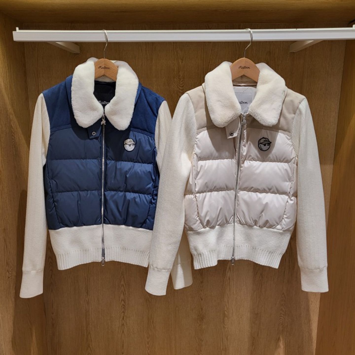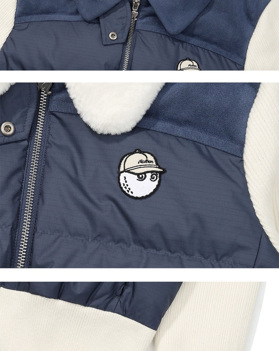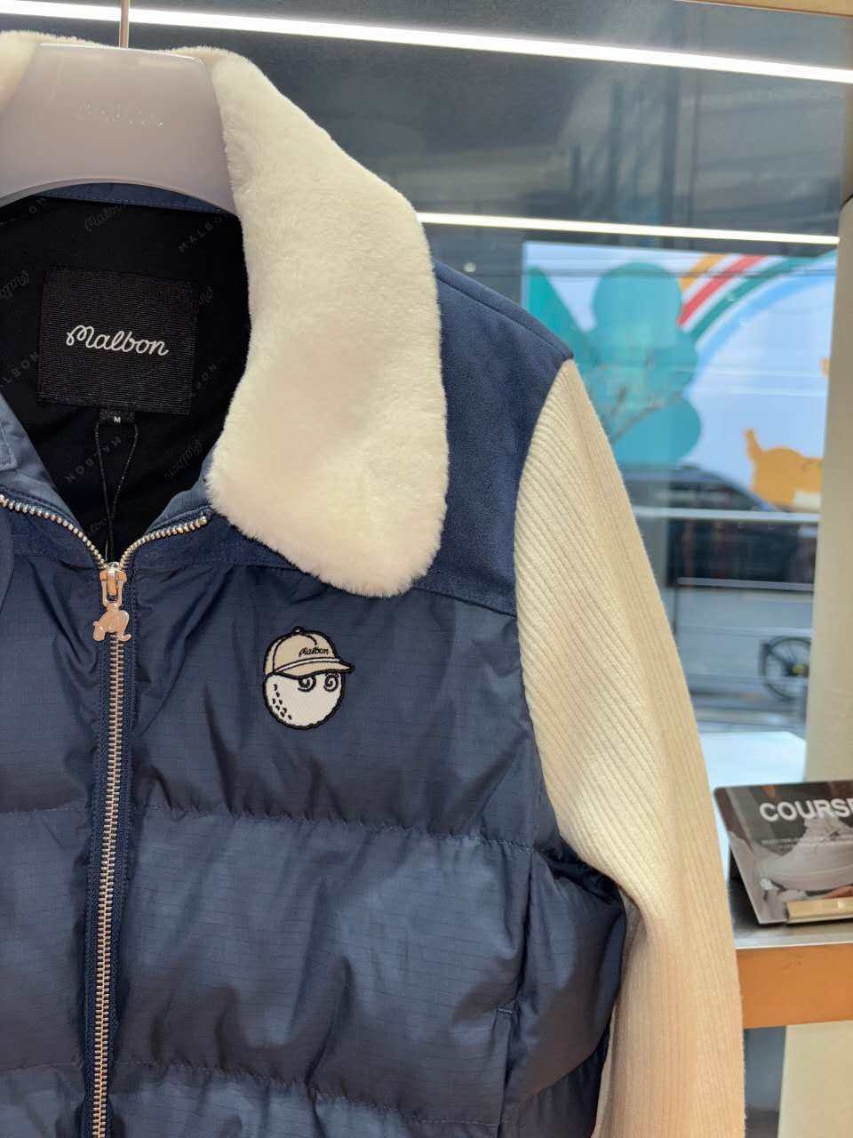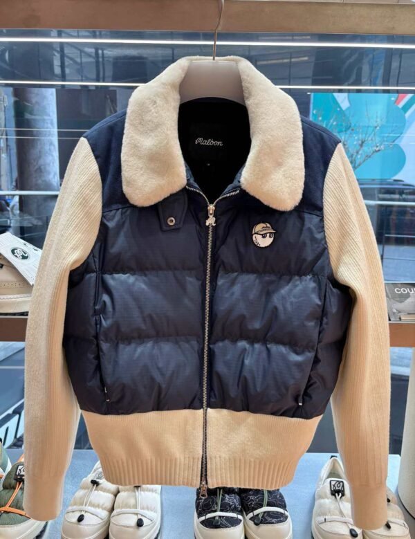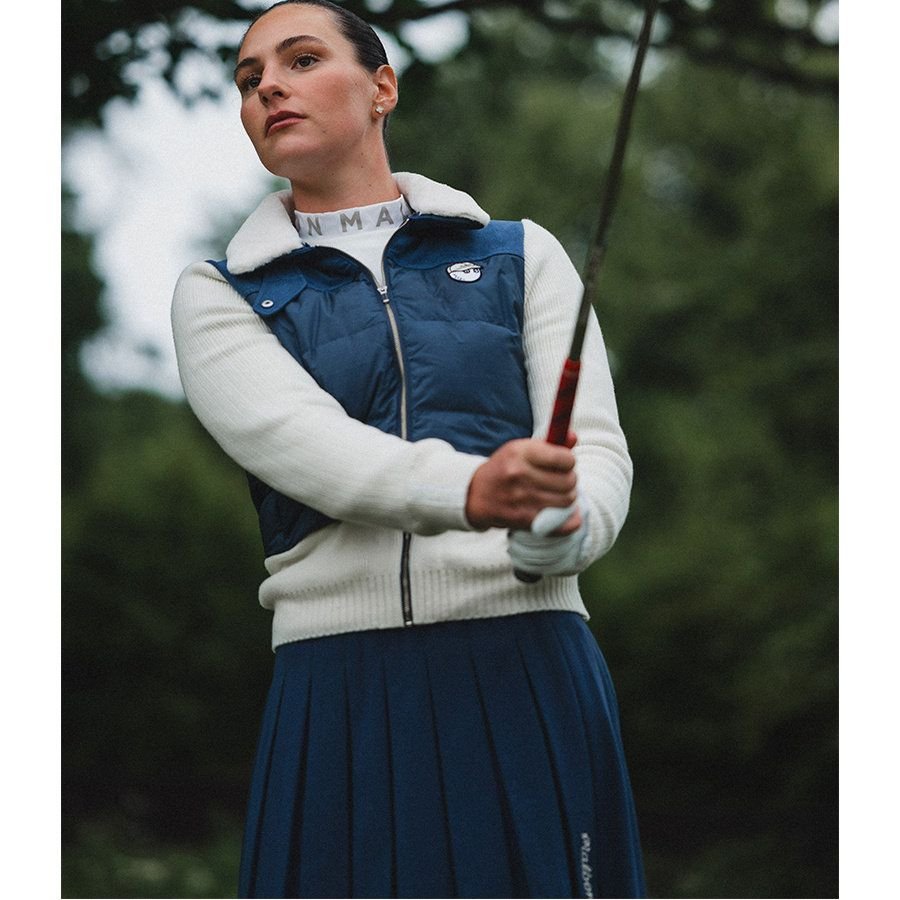Malbon 여성용 골프웨어 가을겨울 로고 컬러블록 니트 보온 캐주얼 다운 재킷