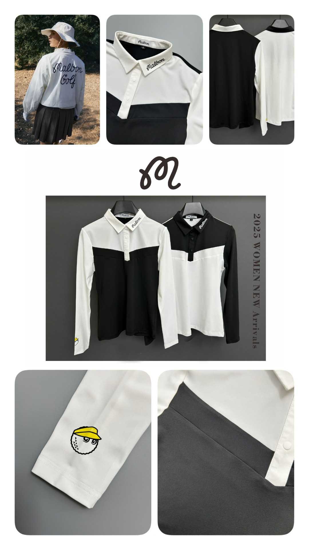 Malbon 여성용 골프 가을겨울 롱슬리브 크루넥 기본티 퀵드라이 통기성 패션 다용도 스포츠웨어