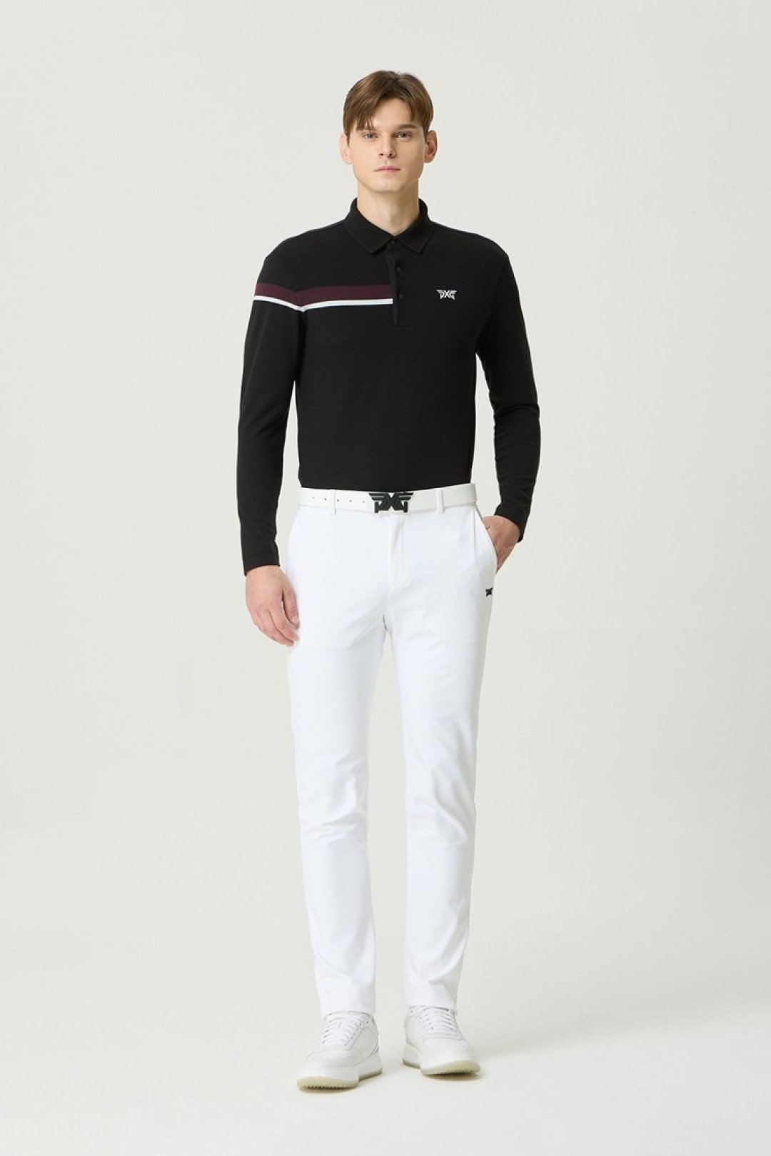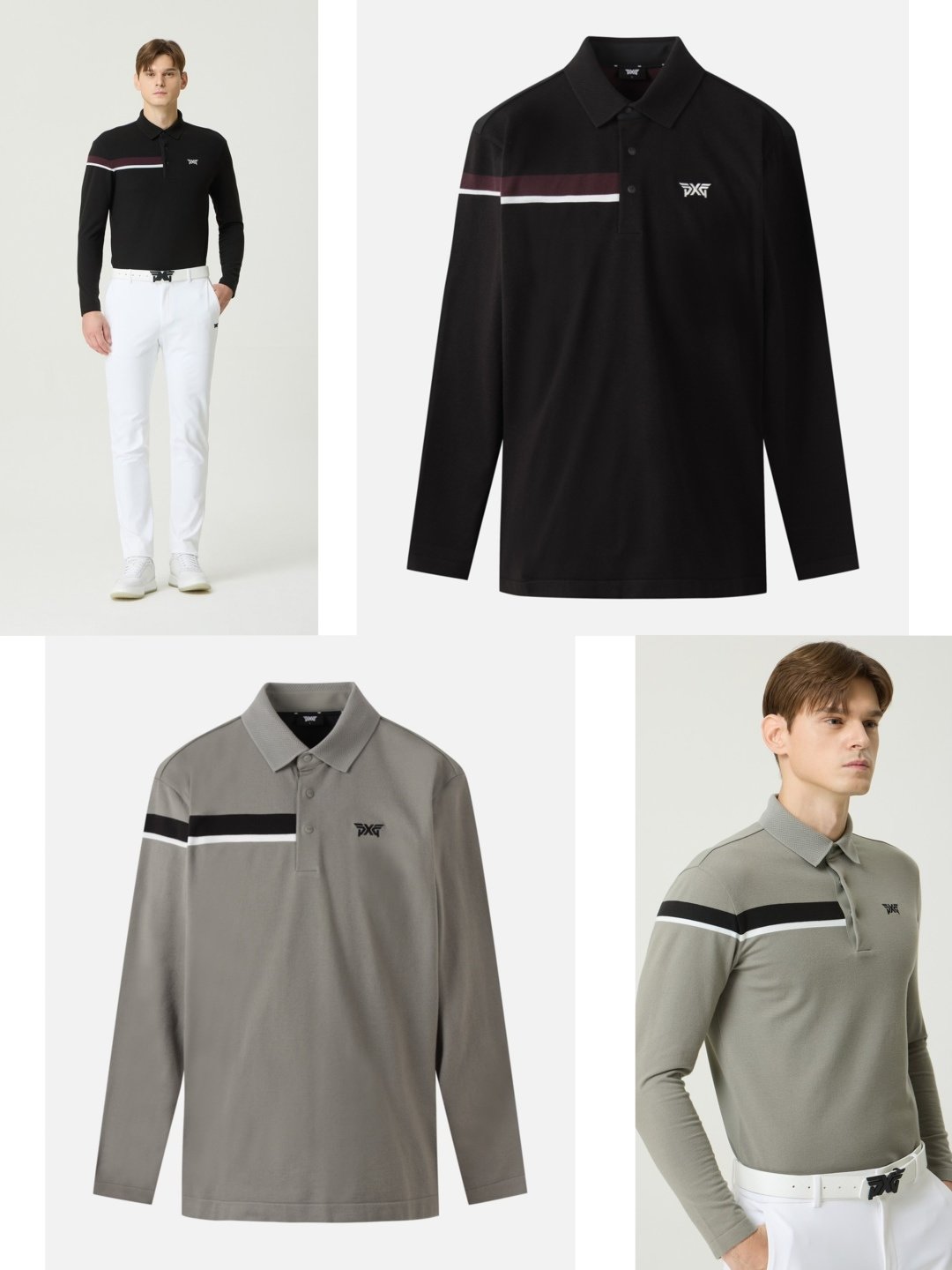PXG 남성용 골프웨어 긴팔 티셔츠|흡습배한 통기성 스포츠 폴로셔츠|골프 코스용 상의