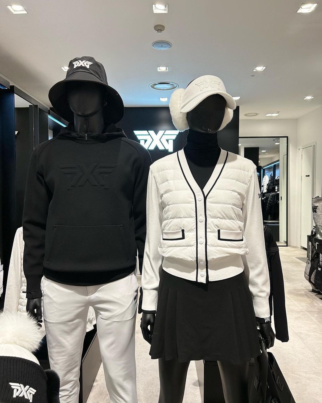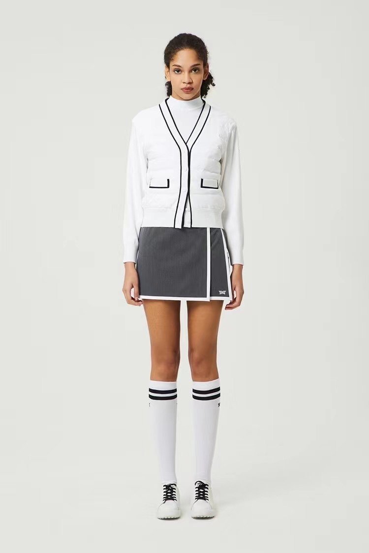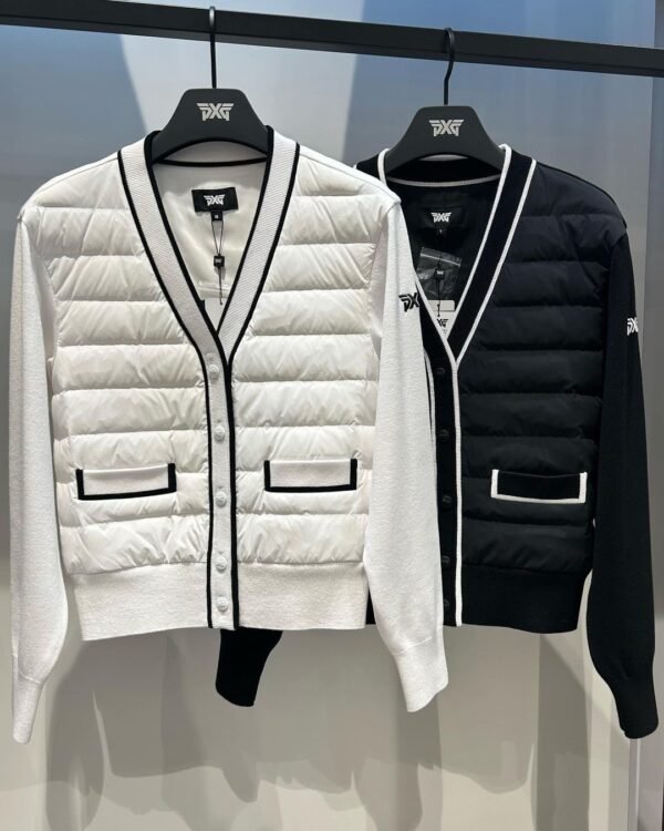 PXG 여성용 가을겨울 골프 롱팔 아우터 솔리드 컬러 니트 패치워크 보온 오리털 다운 카디건 슬림핏 다용도 클래식 스타일