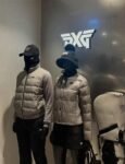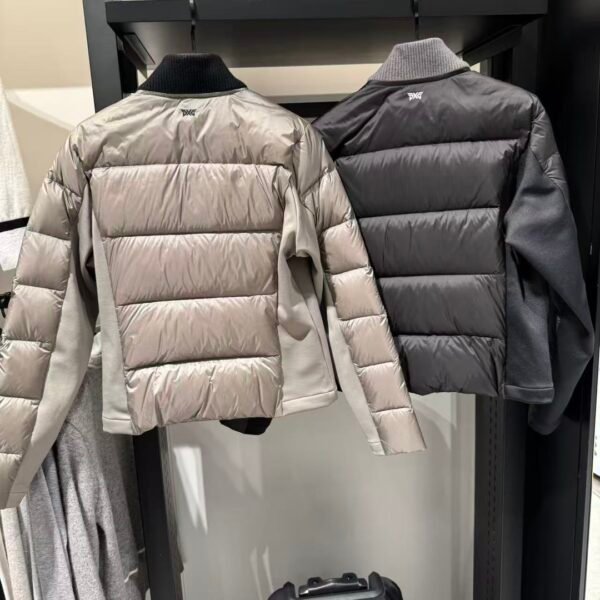 PXG 여성용 골프웨어 상의 겨울 스탠드 칼라 로고 컬러블록 겨드랑이털 다운 스포츠 롱팔 아우터