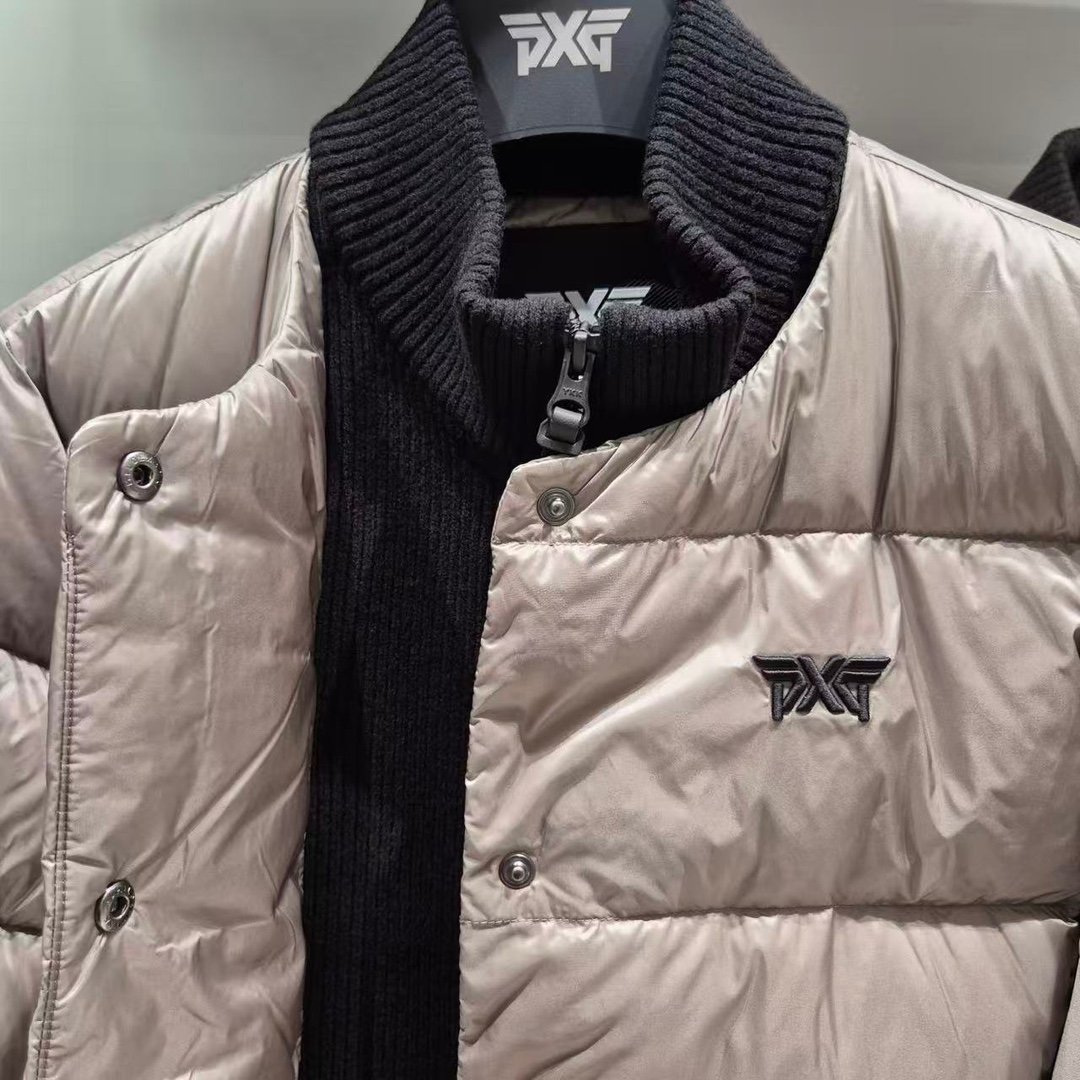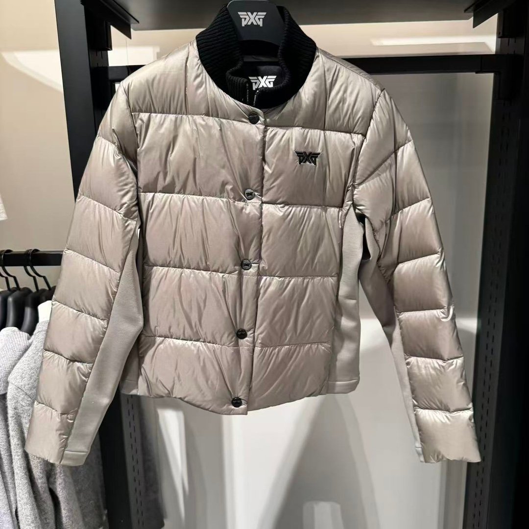 PXG 여성용 골프웨어 상의 겨울 스탠드 칼라 로고 컬러블록 겨드랑이털 다운 스포츠 롱팔 아우터