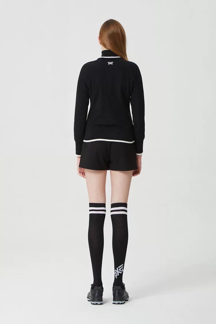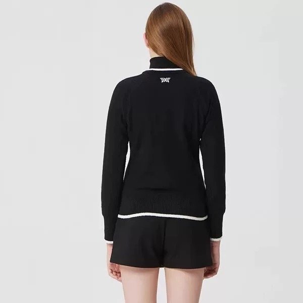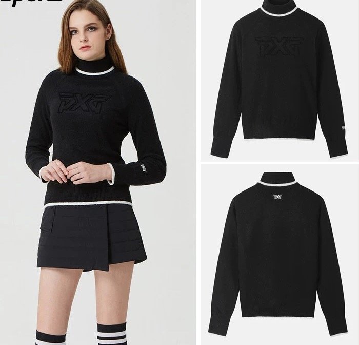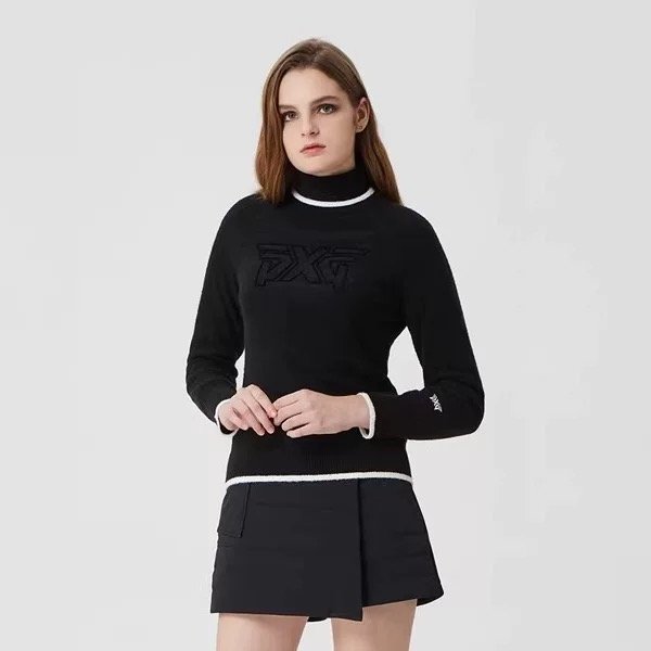 PXG 여성용 골프웨어 25년 가을겨울 시즌 로고 하이넥 캐주얼 바람막이 방한 보온 니트