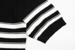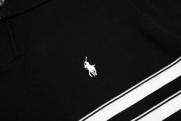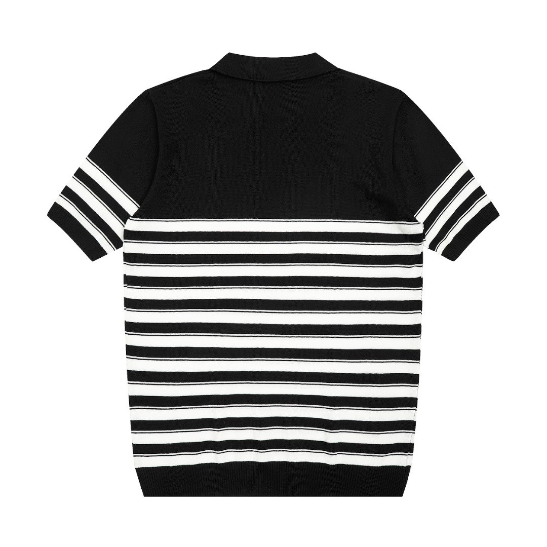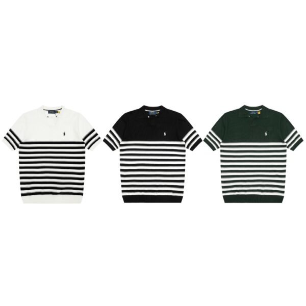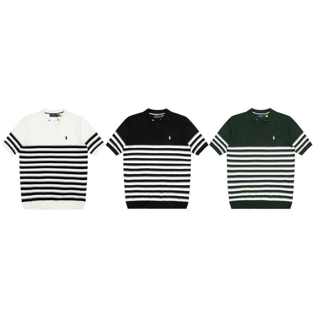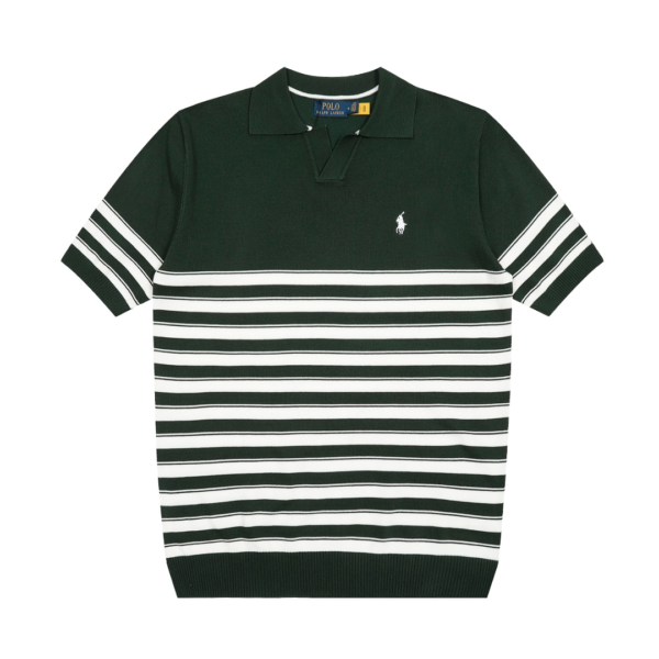 Ralph Lauren 가는 줄무늬 브이넥 아이스 니트 폴로 칼라 반팔 티셔츠