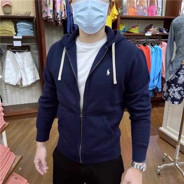 Ralph Lauren 봄가을 작은 말 자수 단색 후드 집업 루즈핏 폴로 남성 아우터