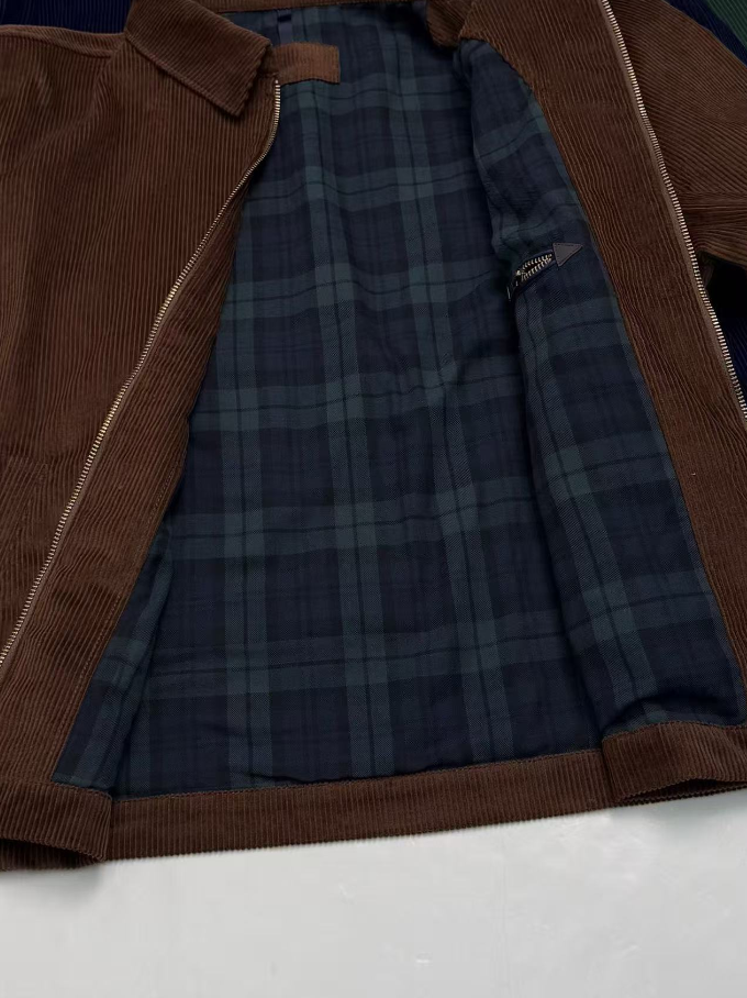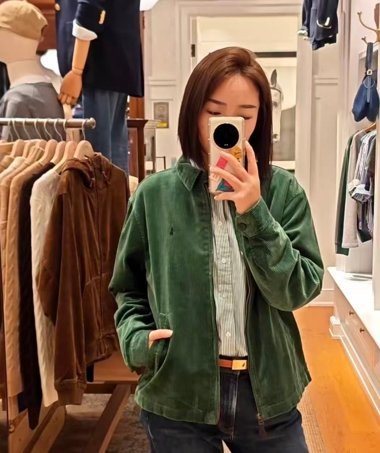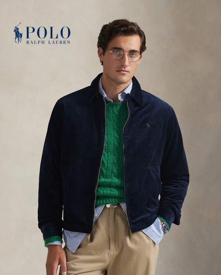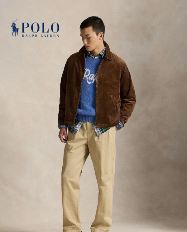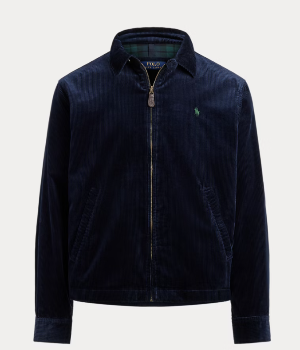 - 스트레이트 칼라, 버튼 스로트 래치, ‘Polo Ralph Lauren’ 로고가 새겨진 맞춤 개발된 버튼, 앞면의 전장 지퍼, 가죽 지퍼 풀