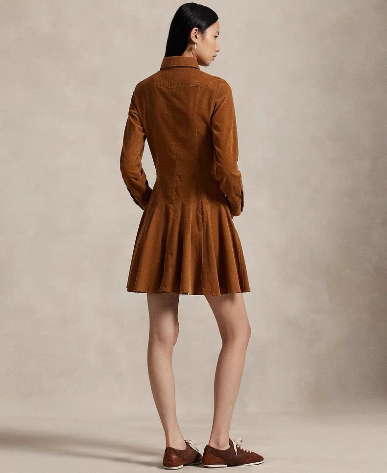 Ralph Lauren 코듀로이 셔츠원피스 캠퍼스룩 언발란스 플리츠 원피스 여성용 사계절 고급스러운 원피스