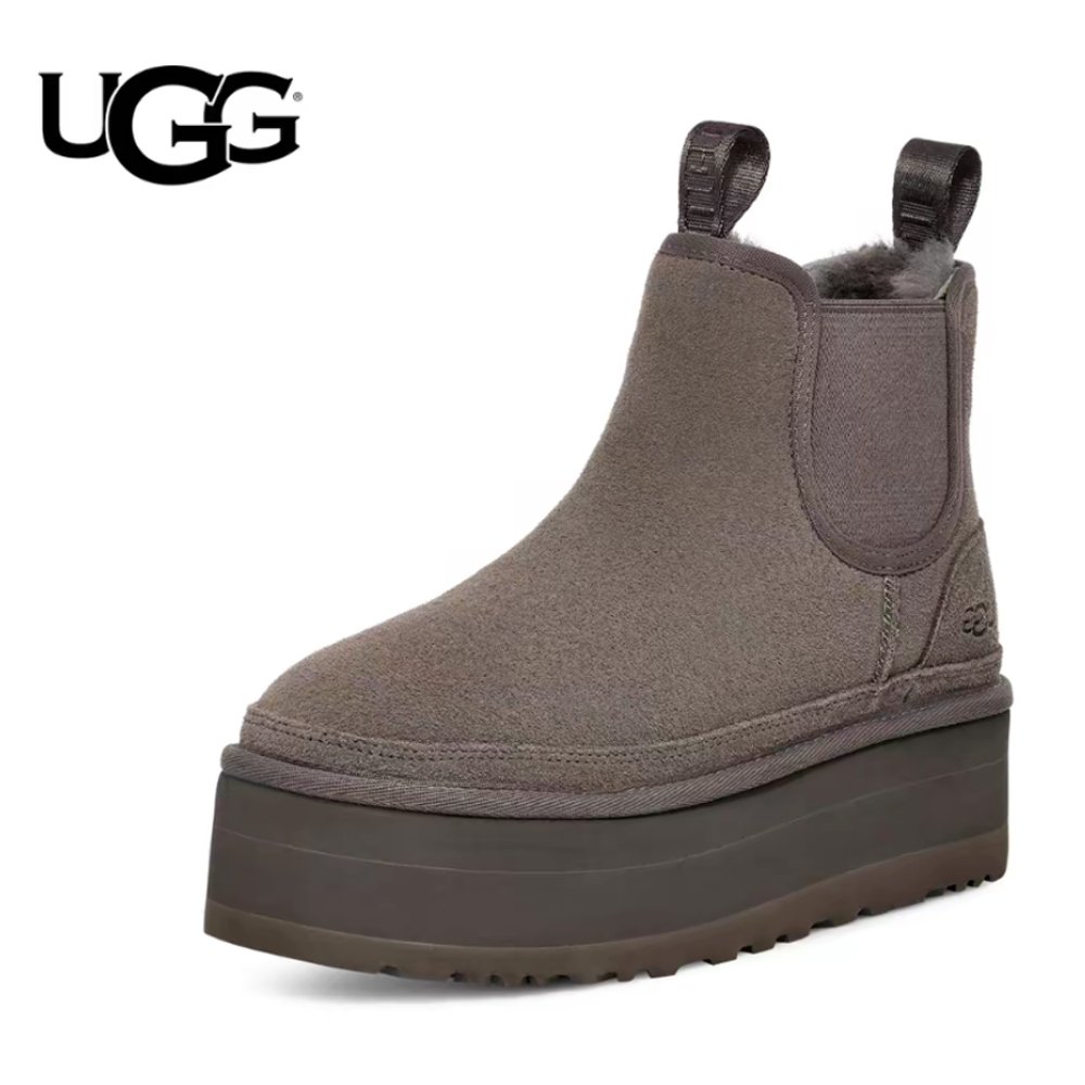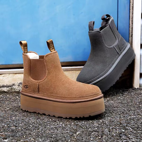 UGG 겨울 여성용 캐주얼 편안한 무지 두꺼운 밑창 스노우 부츠 벌룬 스타일 첼시 숏 부츠